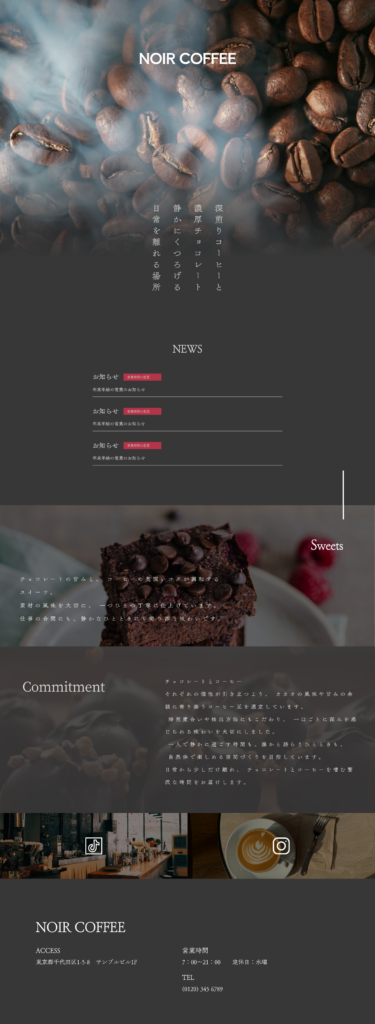 「チョコレートの美味しさを珈琲と一緒に味わえるカフェ「NOIR CAFE」のWEBサイト新規開設。